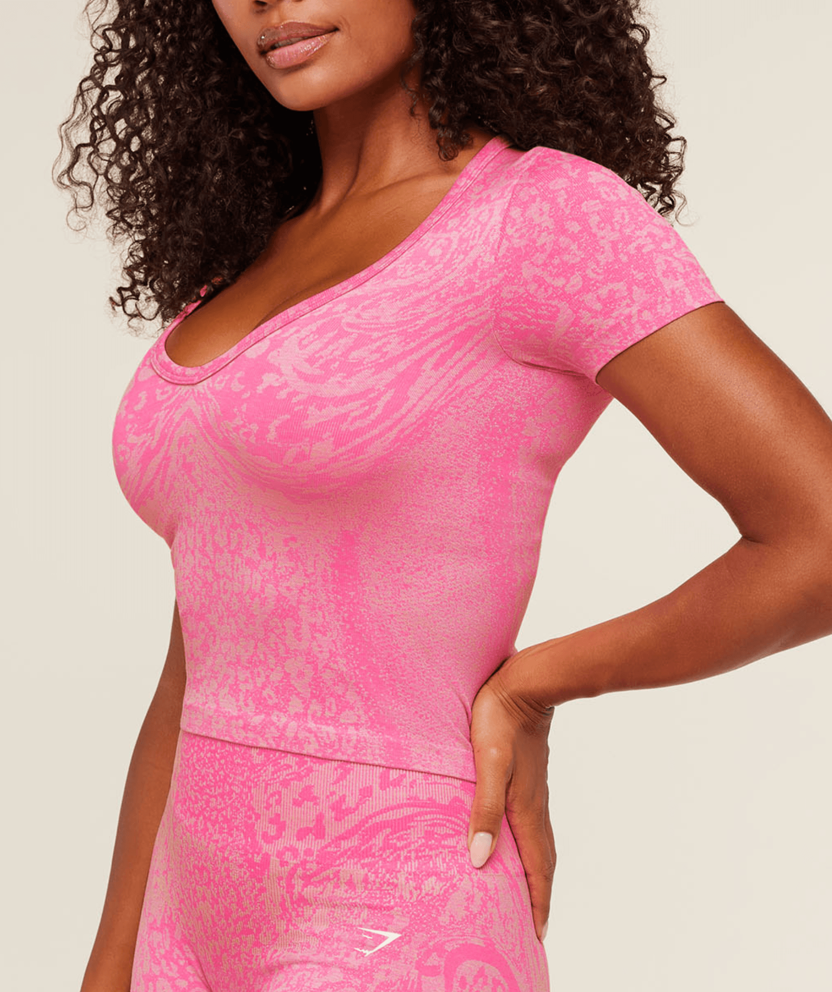 I love this top but unfortunately it is very revealing so that is why I took a star off. As a bigger chested girly, I have to wear something under this to cover up a bit more otherwise I wouldn't feel comfortable lifting in it. Also, it's bigger for its size and a lot thinner/stretchier compared to other gymshark tops in the same size, so I would r...